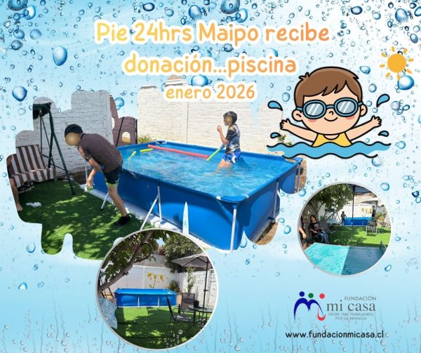 La Directora del proyecto Pie 24 horas Maipo, Catherine Tello, y su equipo de profesionales recibieron una valiosa donación para esta época de verano, de un particular, una piscina.