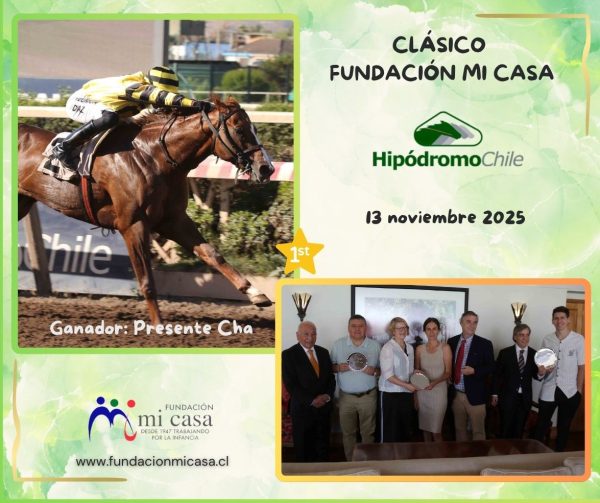El jueves 13 de noviembre se corrió el Clásico Fundación Mi Casa, donde resultó ganador el ejemplar PRESENTE CHA (Constitution), cuyo jinete fue Jorge Zúñiga, el preparador Genaro Covarrubias y el dueño Haras Don Alberto