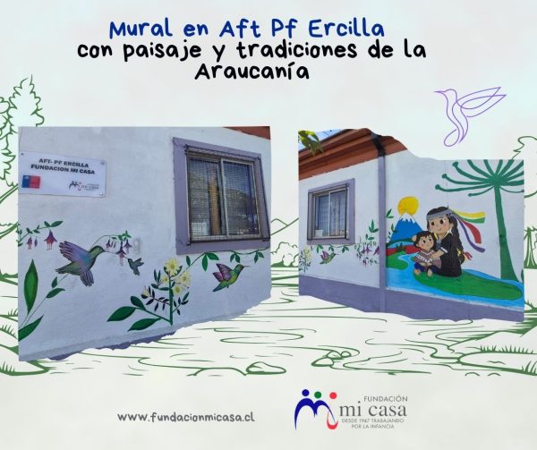 Mural con paisaje de la Araucanía en AFT PF Ercilla