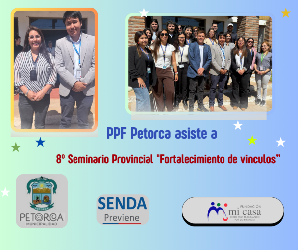 El día 28 de octubre, Natalia Soto Demetrio, Directora de PPF Petorca, junto al Director Regional de Senda de Valparaíso, Carlos Colihuechún Brevis, asistieron al 8° Seminario Provincial «Fortalecimiento de vinculos: Estrategias para una prevención temprana y efectiva en el consumo de alcohol y otras drogas en niños, niñas, adolescentes y jóvenes en la Provincia de Petorca».