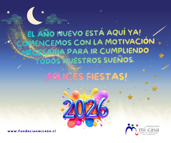 Aprovechamos de enviarles un especial saludo a todos los colaboradores que apoyan la labor de nuestra Fundación y esperamos que este próximo 2026o sea una oportunidad para dejar atrás lo que ya no suma, abrir el corazón a nuevas experiencias y fortalecer lo que realmente importa, darle un futuro mejor a niños, niñas, adolescentes y familias más vulnerables de nuestra sociedad.